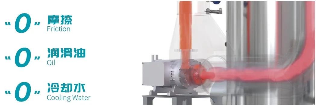 亞光磁懸浮蒸汽壓縮機基于樂恒成熟可靠的高速直驅(qū)技術,沒有了齒輪箱,可實現(xiàn)“0”機械摩擦、“0”潤滑油、“0”冷卻水。不僅降低了油霧污染的風險,更大大減少了維護保養(yǎng)需求,相較其他形式的蒸汽壓縮機具有極大的優(yōu)勢。